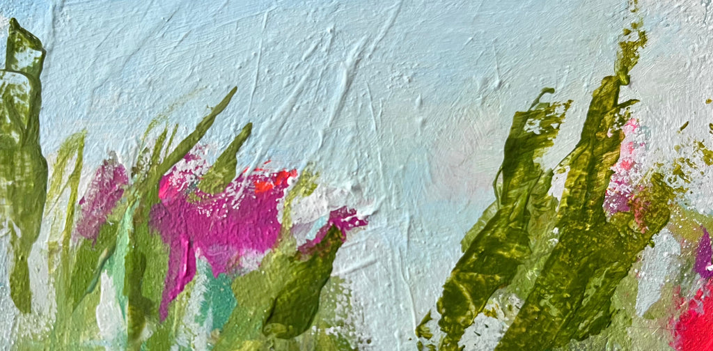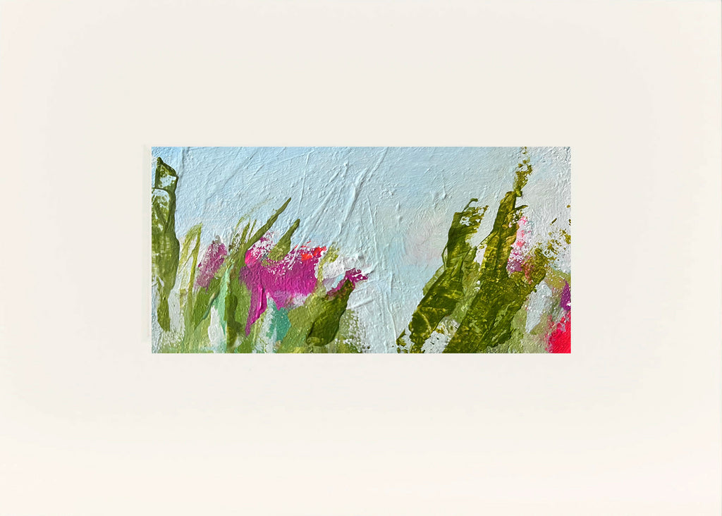 I started doing “minis” many years ago as a way to explore composition, palette and levels of abstraction for my larger works. Visitors to my studio were always so intrigued by them I decided to create some specifically to sell. Even though they are tiny, they are made with great love and care. They are matted in white, sized to fit into any standard 5 x 7 frame. Perfect as a special treat -even for yourself!