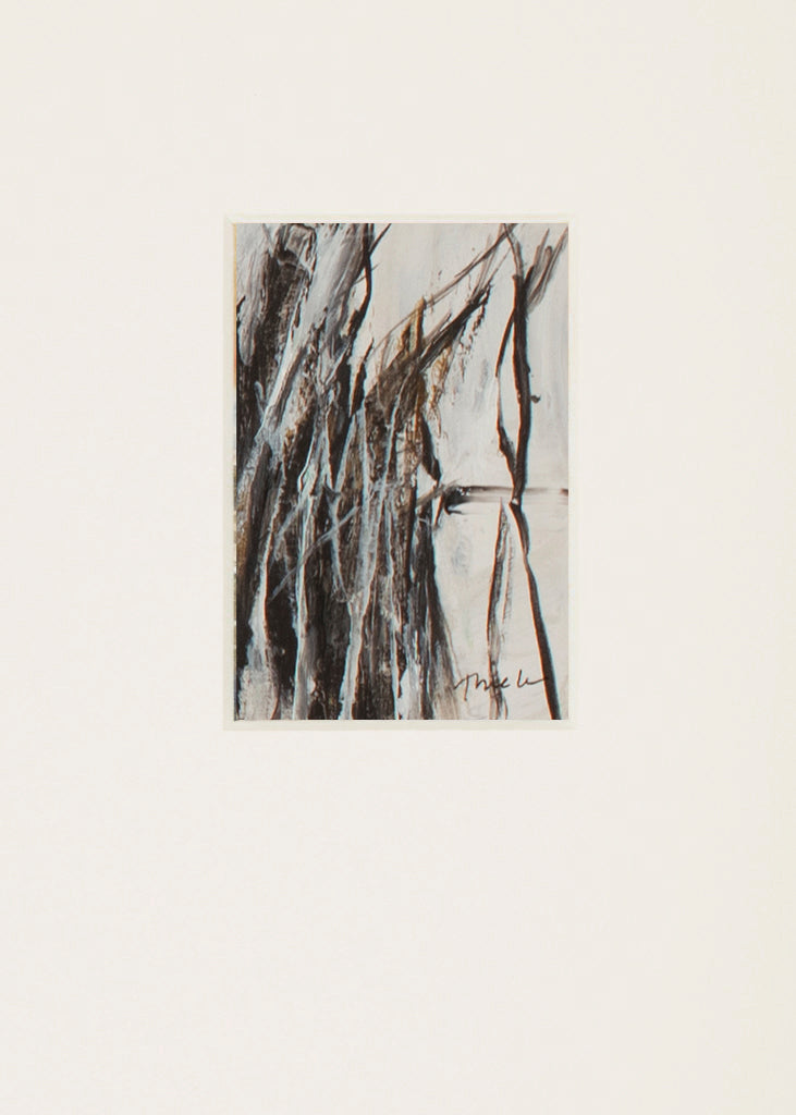 I started doing “minis” many years ago as a way to explore composition, palette and levels of abstraction for my larger works. Visitors to my studio were always so intrigued by them I decided to create some specifically to sell. Even though they are tiny, they are made with great love and care. They are matted in white, sized to fit into any standard 5 x 7 frame. Perfect as a special treat -even for yourself!