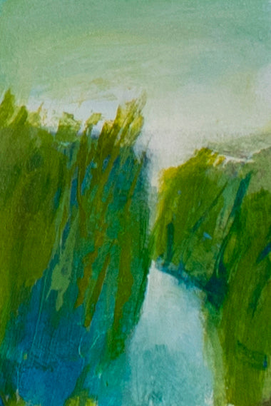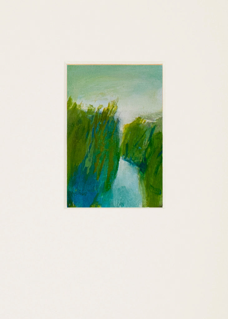 I started doing “minis” many years ago as a way to explore composition, palette and levels of abstraction for my larger works. Visitors to my studio were always so intrigued by them I decided to create some specifically to sell. Even though they are tiny, they are made with great love and care. They are matted in white, sized to fit into any standard 5 x 7 frame. Perfect as a special treat -even for yourself!
